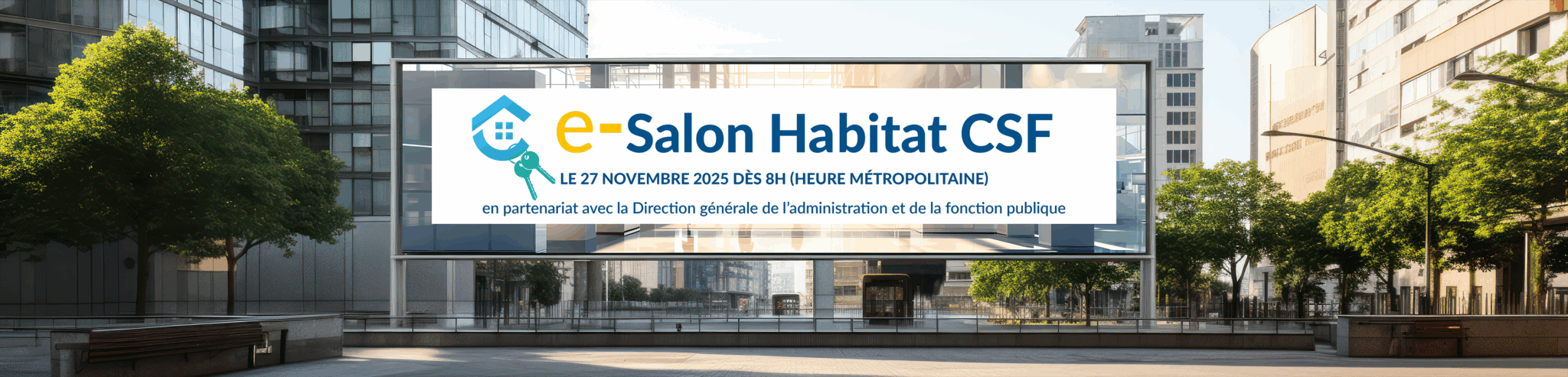 Le 27 novembre 2025, découvrez le 1er e-salon Habitat CSF, organisé en partenariat avec la direction générale de l’administration et de la fonction publique, le rendez-vous en ligne dédié à l’immobilier et au logement.