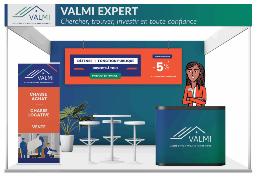 *L’offre promotionnelle « remise de 5 % » s’applique aux honoraires de transaction immobilière pratiqués par la société VALMI, concernant les prestations de vente, de chasse achat et de chasse locative. Cette offre est accordée aux personnes ayant pris contact avec un membre de l’équipe VALMI durant le salon e-CSF, se tenant en ligne le 27 novembre 2025, et cette prise de contact doit être identifiable par un élément justificatif (échange en ligne, interaction sur le stand virtuel, formulaire complété, badge numérique, prise de contact validée par un conseiller VALMI ou tout autre mode d’enregistrement reconnu). La remise de 5 % s’applique exclusivement sur les honoraires de transaction convenus dans le cadre du mandat signé avec VALMI et ne porte pas sur les frais annexes éventuels (prestations complémentaires,options, ou toute prestation non expressément incluse dans le mandat). L’offre est réservée aux nouveaux clients et limitée à une utilisation par foyer. Elle n’est ni cessible, ni transférable et ne peut être cumulée avec d’autres offres promotionnelles, remises commerciales ou avantages déjà en vigueur au sein du réseau VALMI. Pour bénéficier de cette remise, le mandat de vente, de chasse locative ou de chasse achat devra être signé avant le 31 décembre 2026. Passé cette date, l’offre sera considérée comme caduque. L’offre est applicable uniquement aux biens situés dans les zones géographiques couvertes par les services de transaction VALMI. En cas de contestation, les identifiants de contact enregistrés lors du salon e-CSF feront foi. VALMI se réserve la possibilité de modifier, suspendre ou annuler l’offre à tout moment, sans préavis, pour des raisons opérationnelles, réglementaires ou en cas de force majeure, sans impact sur les droits des bénéficiaires ayant déjà rempli les conditions d’éligibilité. Le bénéficiaire reconnaît accepter pleinement l’ensemble des présentes conditions.